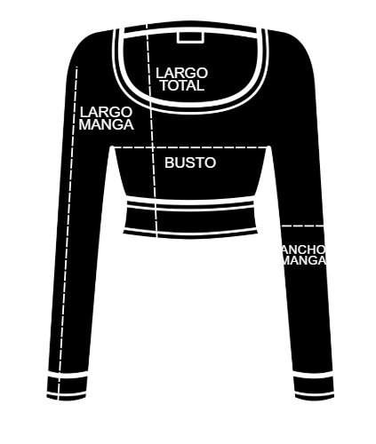 Busto: 42 cm Largo total: 38 cm Ancho mangas: 11 cm Largo mangas: 59 cm