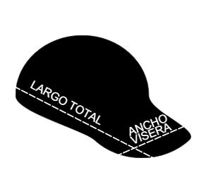 Circunferencia: 48 cm Profundidad: 16 cm Largo visera: 11 cm Ancho visera: 18 cm Largo total: 32 cm