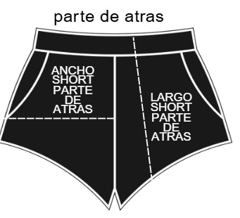 Talle S: Cadera: 42 cm Largo: 30 cm Ancho solapa: 30 cm Ancho short parte de atrás: 24 cm Largo short parte de atrás: 33 cm