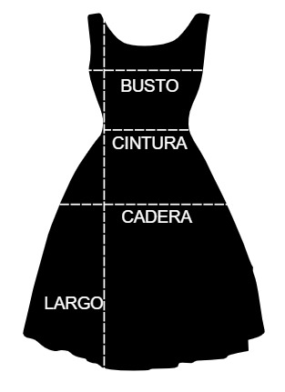 Busto: 31 cm Busto estirado: 42 cm Cintura: 32 cm Cadera: 36 cm Largo: 72 cm